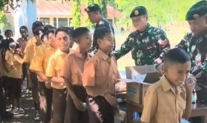 Belu — Prajurit Pos Maubusa Satgas Pamtas RI-RDTL Yonarmed 12 Kostrad melaksanakan kegiatan sosial dengan membagikan telur rebus, roti, dan air putih gratis kepada siswa SDK Wesoer, Desa Tohe, Kecamatan Raihat, Kabupaten Belu. Kegiatan ini dilakukan sebagai bentuk kepedulian terhadap kesehatan dan semangat belajar anak-anak di wilayah perbatasan. Sabtu (08/11/2025).