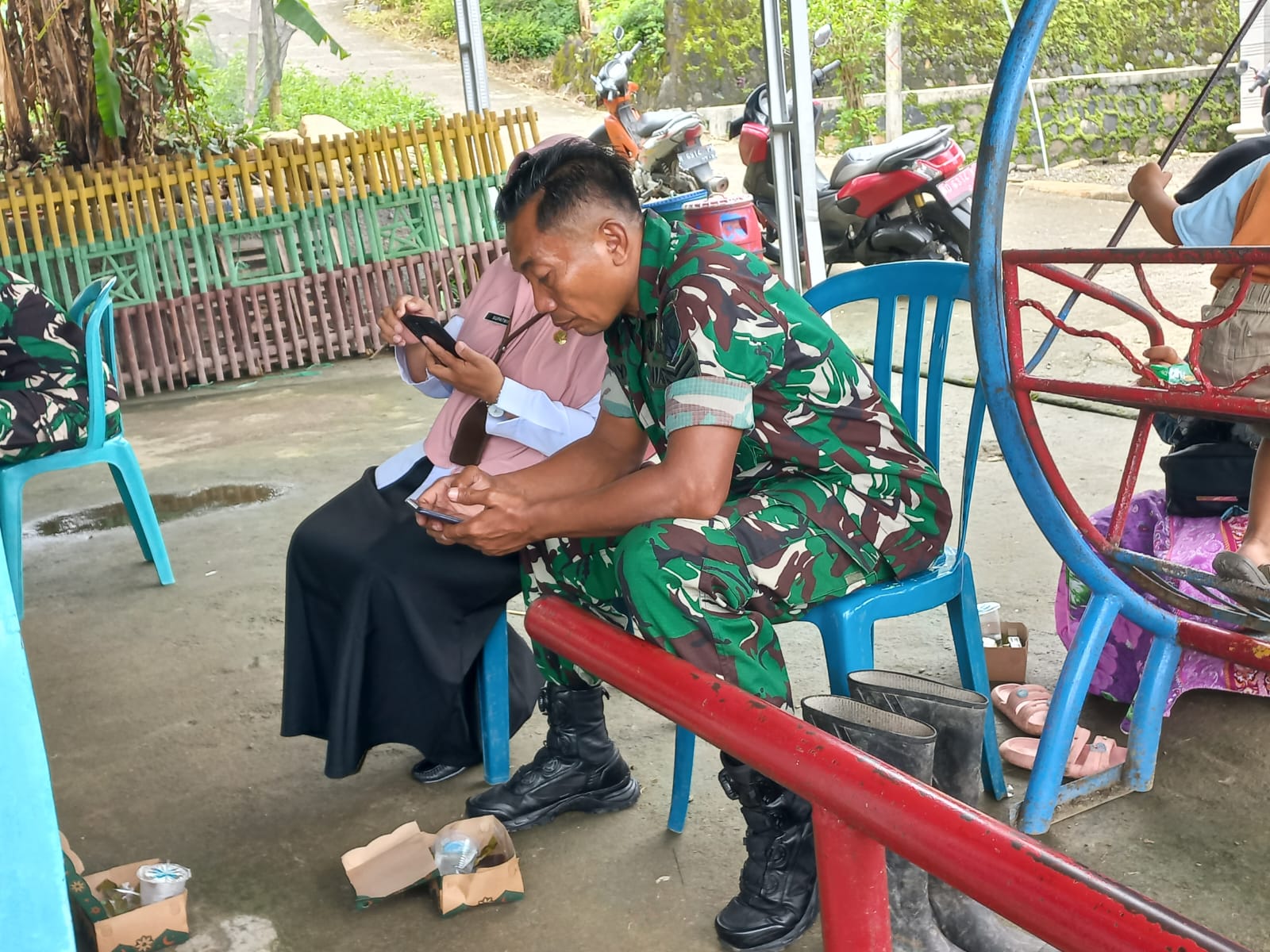 Boyolali – Bati Staf Teritorial Kodim 0724/Boyolali Serka Karyono bersama dengan Ibu Fatmi dari Dispermades Kabupaten Boyolali berkoordinasi data progres pelaksanaan kegiatan TMMD Reg ke 123 Tahun 2025 Kodim 0724/Boyolali, (02/03/2025)