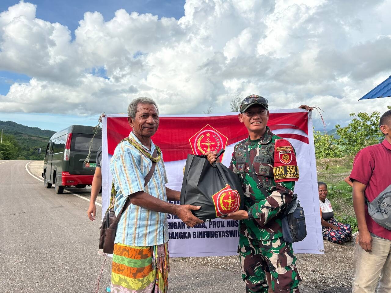 Danpos Inbate, Letda Arh Ahmad Seno menyampaikan, “Kami tidak hanya berdiri di sini untuk menjaga patok batas negara, tetapi juga untuk menjaga kesejahteraan saudara-saudara kami di perbatasan. Senyum warga Kecamatan Bikomi Nilulat adalah energi bagi kami dalam menjalankan tugas.”