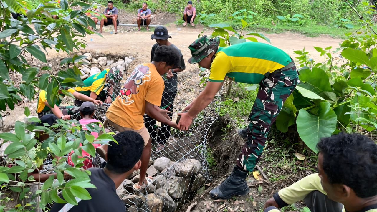 Belu — Personel Pos Lookeu Satgas Pamtas RI–RDTL Sektor Timur melaksanakan karya bakti pembangunan tanggul bersama warga Desa Lookeu, Kecamatan Tasifeto Barat, Kabupaten Belu. Kegiatan ini menjadi bentuk kepedulian prajurit terhadap keselamatan dan kesejahteraan masyarakat di wilayah tapal batas, Sabtu (14/02/2026).