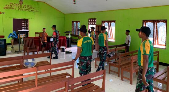 Aksi Sosial Satgas Pos Motaain: Gereja Silawan Dibersihkan dan Dicat Ulang