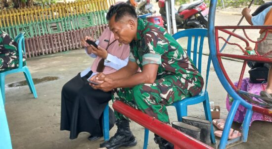 Boyolali – Bati Staf Teritorial Kodim 0724/Boyolali Serka Karyono bersama dengan Ibu Fatmi dari Dispermades Kabupaten Boyolali berkoordinasi data progres pelaksanaan kegiatan