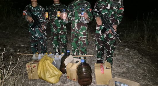TTU – Satgas Pamtas RI-RDTL Sektor Barat Yonarhanud 2 Kostrad Pos Wini kembali berhasil menggagalkan upaya penyelundupan komoditas ilegal berupa minuman keras,