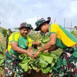 Belu – Personel Pos Fohuk Satgas Pamtas RI-RDTL Sektor Timur Yonarmed 12 Kostrad melaksanakan kegiatan penyuluhan ketahanan pangan serta panen sayur bersama