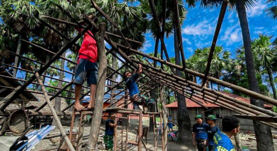 Gotong Royong di Perbatasan, Satgas Pamtas Yonarhanud 2 Kostrad Bantu Pasang Atap Daun Lontar