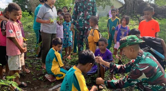 TTU – Wujud kepedulian terhadap kelestarian lingkungan, Satgas Pamtas RI–RDTL Sektor Barat Yonarhanud 2 Kostrad Pos Naekake berikan edukasi penanaman pohon cemara