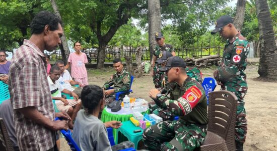 Belu – Satgas Pamtas RI–RDTL Sektor Timur Yonarmed 12 Kostrad melaksanakan kegiatan pelayanan kesehatan keliling dengan metode door to door dalam rangka