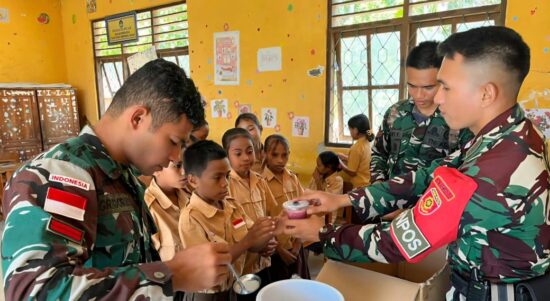 Kolak Manis dan Ilmu Berharga, Hadiah Satgas Pamtas untuk Anak Sekolah di Raihat