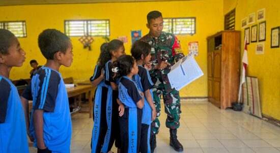 TTU – Prajurit Satgas Pamtas RI–RDTL Sektor Barat Yonarhanud 2 Kostrad Pos Manusasi terus menunjukkan kepeduliannya terhadap kemajuan pendidikan di wilayah perbatasan.