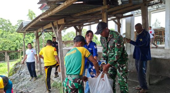 Pasar Ditata Senyum Merata, Makosatgas Pamtas Yonarhanud 2 Kostrad Laksanakan Karya Bakti Bersama Warga