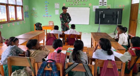 TTU – Pos Lookeu, Satgas Pamtas RI–RDTL Sektor Timur melaksanakan kegiatan pengajaran di SD Inpres Lookeu sebagai bentuk kepedulian terhadap dunia pendidikan