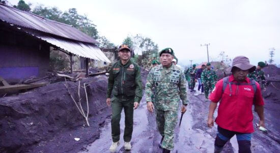 Lumajang – Panglima Divisi Infanteri 2 Kostrad Mayjen TNI Susilo melaksanakan peninjauan langsung ke Desa Supiturang, Kecamatan Pronojiwo, Kabupaten Lumajang. Salah satu