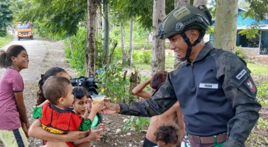 Belu – Satgas Pamtas RI–RDTL Sektor Timur Yonarmed 12 Kostrad melalui Pos Nunura melaksanakan kegiatan berbagi kolak kepada masyarakat di Desa Tohe,