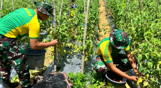 Belu — Pos Lookeu Satgas Pamtas RI–RDTL Sektor Timur Yonarmed 12 Kostrad melaksanakan kegiatan panen tomat bersama masyarakat di wilayah perbatasan Desa