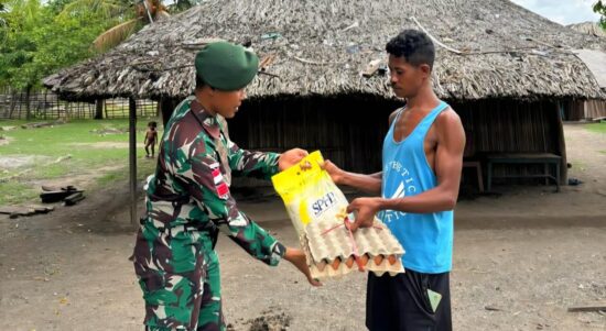TTU – Satgas Pamtas RI–RDTL Sektor Timur Yonarmed 12 Kostrad melalui Pos Motaain melaksanakan kegiatan pembagian sembako gratis kepada masyarakat Desa Mota’ain.