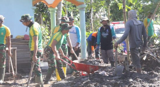 Lumajang – Prajurit TNI, warga dan relawan masih berjibaku dengan lumpur yang menutupi rumah warga di Desa Supiturang, Kecamatan Pronojiwo, pasca erupsi