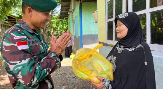 Belu – Satgas Pamtas RI–RDTL Sektor Timur Yonarmed 12 Kostrad kembali menunjukkan kepeduliannya terhadap masyarakat perbatasan melalui kegiatan Jumat Berkah Pemberian Sembako.