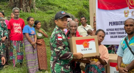 Satgas Pamtas Yonarhanud 2 Kostrad Berkolaborasi dengan Kodim 1618/TTU, Salurkan Sembako