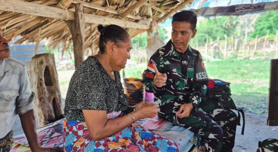 TTU – Satgas Pamtas RI–RDTL Sektor Barat Yonarhanud 2 Kostrad Pos Wini melaksanakan kegiatan komunikasi sosial serta pelayanan kesehatan keliling kepada