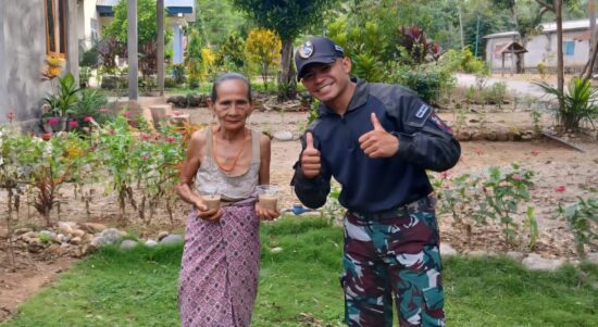 Belu – Satgas Pamtas RI–RDTL Sektor Timur Yonarmed 12 Kostrad Pos Nunura melaksanakan kegiatan sosial berupa pembagian bubur kacang ijo kepada masyarakat