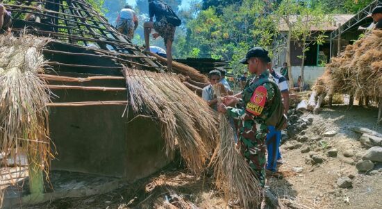 Rajut Ilalang Satukan Perbatasan, Satgas Pamtas RI-RDTL Sektor Barat Pos Manamas Bangun Rumah Adat