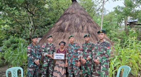 Satgas Pamtas RI–RDTL Yonarhanud 2 Pos Aplal Bagikan Paket Sembako Jumat berkah