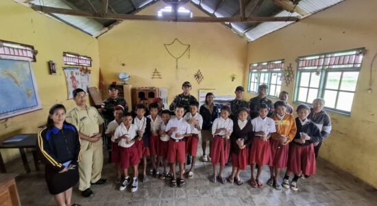 TTU — Satgas Pamtas RI–RDTL Sektor Barat Yonarhanud 2 Kostrad memberikan dukungan Tenaga Pendidik sekaligus bagikan bubur kacang hijau bergizi kepada siswa-siswi