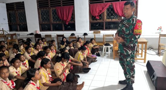 TTU – Dalam upaya menanamkan nilai-nilai bela negara, nasionalisme, dan memperluas wawasan kebangsaan, Satgas Pamtas RI–RDTL Sektor Barat Yonarhanud 2 Kostrad memberikan