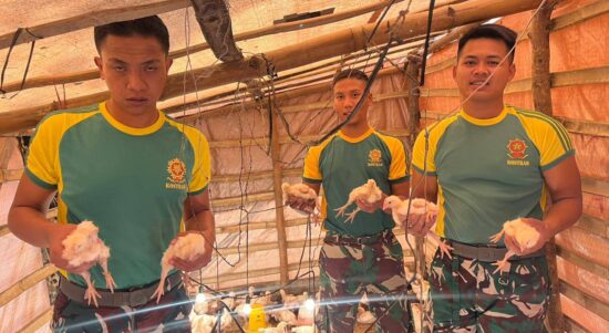 TTU – Satgas Pamtas RI-RDTL Sektor Barat Yonarhanud 2 Kostrad Pos Inbate melaksanakan program ketahanan pangan melalui budidaya peternakan ayam di Desa