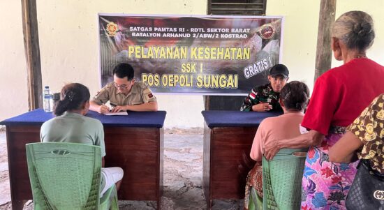 Kupang – Satgas Pamtas RI-RDTL Sektor Barat Yonarhanud 2 Kostrad Pos Oepoli Sungai bersama Yayasan Tangan Pengharapan menyelenggarakan aksi sosial pemeriksaan kesehatan
