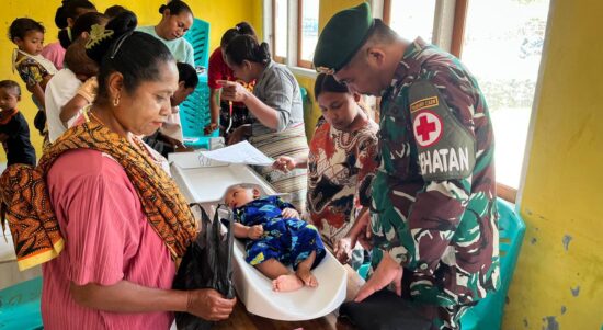 TTU – Prajurit Satgas Pamtas RI–RDTL Sektor Barat Yonarhanud 2 Kostrad Pos Manusasi menunjukkan kepeduliannya terhadap kesehatan masyarakat dengan memberikan bantuan serta