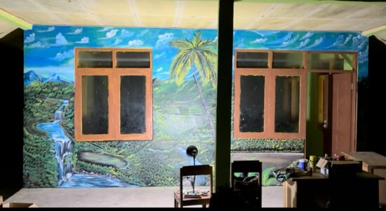 Ceriakan Dunia Pendidikan, Satgas Pamtas Yonarhanud 2 Kostrad Hiasi Dinding PAUD Oeliso dengan Lukisan Pemandangan
