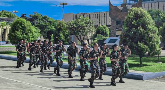 TTU – Satgas Pamtas RI-RDTL Sektor Barat Yonarhanud 2 Kostrad Pos Wini melaksanakan kegiatan lari pagi bersenjata di wilayah Desa. Wini, Kecamatan