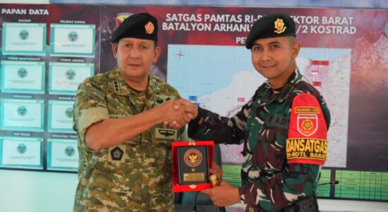 TTU – Satgas Pamtas RI-RDTL Sektor Barat Yonarhanud 2 Kostrad menerima kunjungan Tim Direktorat Jenderal Strategi Pertahanan (Ditjen Strahan) Kementerian Pertahanan Republik