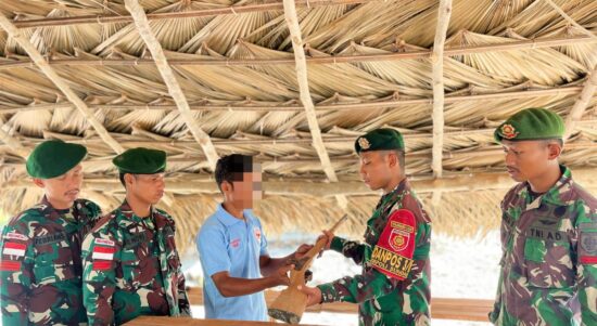Wujud Pendekatan Humanis, Satgas Pamtas Yonarhanud 2 Kostrad Terima Senjata Api dari Warga Perbatasan