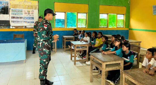 Satgas Pamtas Yonarmed 12 Kostrad Dukung Pendidikan Sosial di SDI Nanaenoe
