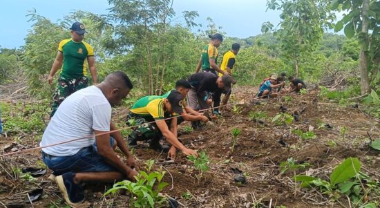 Belu – Satgas Pamtas RI–RDTL Sektor Timur Yonarmed 12 Kostrad Pos Salore melaksanakan kegiatan penanaman 1.000 pohon porang bersama warga Desa Tulakadi,