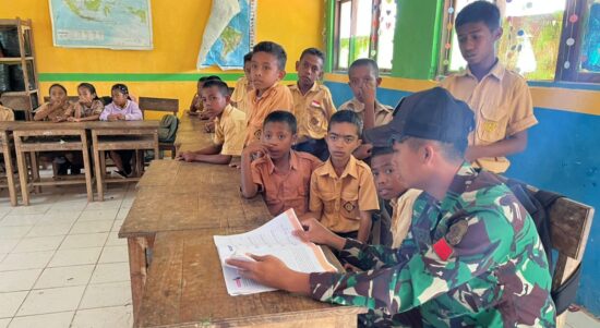 Malaka — Personel Pos Nananoe Satgas Pamtas RI–RDTL Sektor Timur melaksanakan kegiatan GADIK (pengajaran) di SD Inpres Nananoe, Desa Nananoe, Kecamatan Kobalima