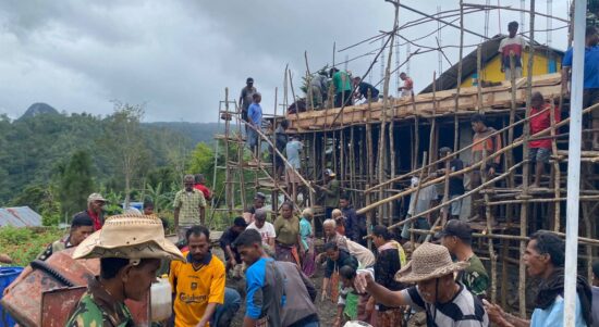 TTU – Satgas Pamtas RI–RDTL Sektor Barat Yonarhanud 2 Kostrad Pos Nilulat melaksanakan kegiatan karya bakti berupa pengecoran Gereja Jemaat Stu. Antonius