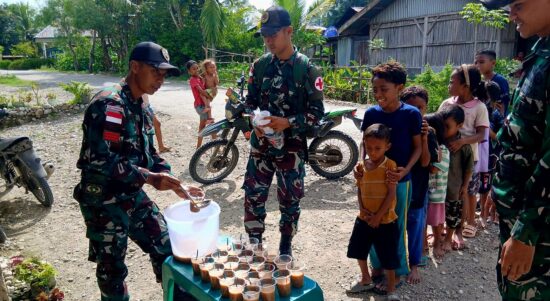 Belu – Satgas Pamtas RI–RDTL Sektor Timur Yonarmed 12 Kostrad melalui Pos Nunura melaksanakan kegiatan Jumat Berkah yang dipadukan dengan pelayanan kesehatan