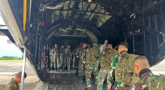 Bangka Belitung – Prajurit Yonif 501 Kostrad tiba di Bandara Depati Amir, Bangka Belitung menggunakan pesawat C-130 Hercules, untuk melaksanakan Latihan Gabungan