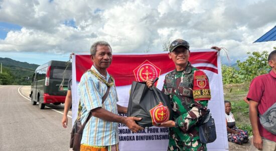 Sinergi untuk Berbagi, Satgas Pamtas Yonarhanud 2 Kostrad Bagikan Paket Sembako Bersama Kodim 1618/TTU