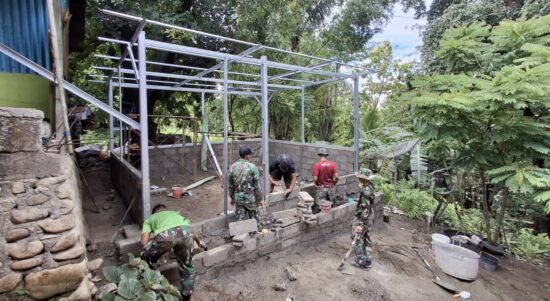 Belu – Satgas Pamtas RI–RDTL Sektor Timur Yonarmed 12 Kostrad kembali menunjukkan kepedulian terhadap masyarakat perbatasan dengan melaksanakan pembangunan ulang Rumah Tidak