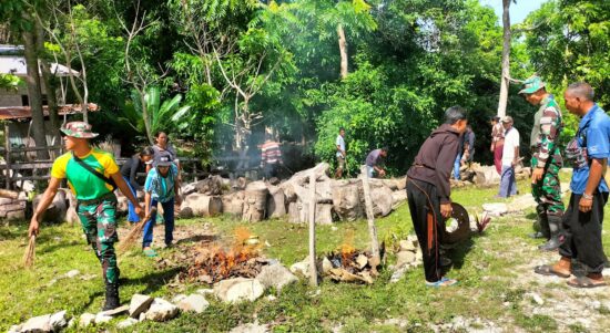 Malaka – Personel Pos Ailala Satgas Pamtas RI–RDTL Sektor Timur melaksanakan kegiatan Karya Bakti membersihkan Kapela Santus Frans Asisi di Desa Alas