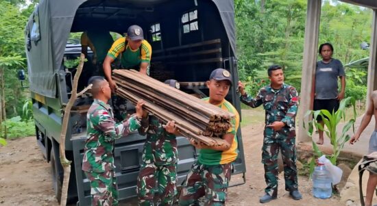 Belu – Satgas Pamtas RI–RDTL Sektor Timur Yonarmed 12 Kostrad melaksanakan kegiatan bedah rumah terhadap rumah milik Ibu Maria Bui Mali (70