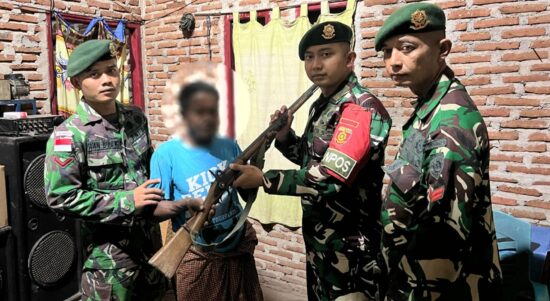 Wujud Keamanan dan Kepercayaan, Warga Delomil Serahkan Senjata kepada Satgas Pamtas