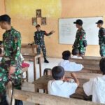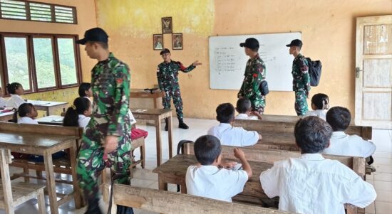 Malaka – Satgas Pamtas RI–RDTL Sektor Timur Yonarmed 12 Kostrad melalui Pos Ailala melaksanakan kegiatan pengajaran di SDK Ailala, Desa Alas Utara,