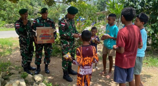 Belu – Personel Pos Laktutus Satgas Pamtas RI–RDTL Sektor Timur Yonarmed 12 Kostrad melaksanakan kegiatan berbagi bubur kepada warga di Desa Laktutus,