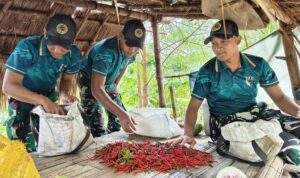 Malaka – Wujud kepedulian terhadap masyarakat terus ditunjukkan Satgas Pamtas RI–RDTL Sektor Timur Yonarmed 12 Kostrad melalui kegiatan perbantuan panen jagung bersama