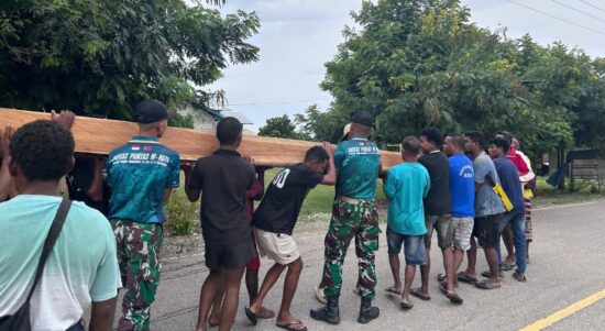 Yonarmed 12 Kostrad Bersama Warga Siapkan Material Rumah Adat Lehak Bein’ndan